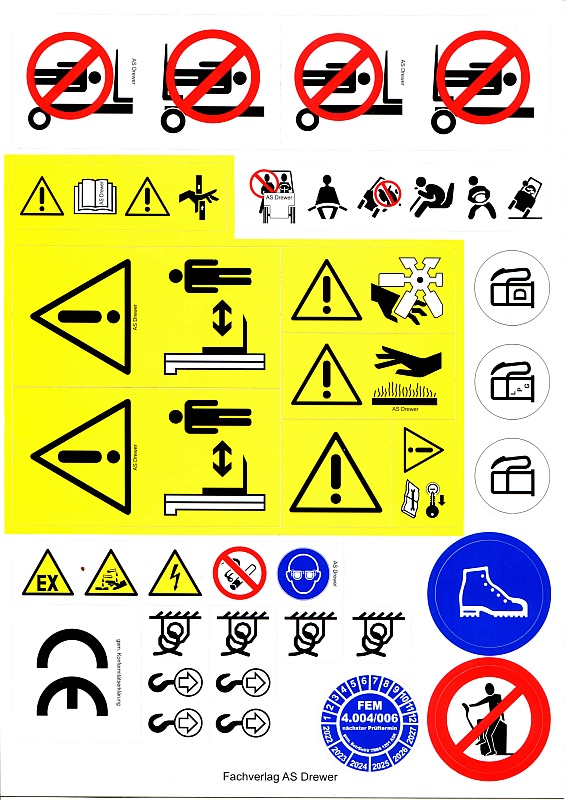 Ersatz Aufkleber Sicherheitsaufkleber für alle Gabelstapler Stapler Bauarten wie: Frontstapler Schubmaststapler Hochregalstapler Mitgänger Flurförderzeuge und mehr z.B. Linde Jungheinrich Still Yale Hyster Clark BT Toyota und mehr Hersteller.